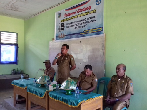 SMP Negeri 2 Wawonii Utara mengikuti kegiatan In House Training (IHT) Program Sekolah Model Pertama dalam Implementasi SPMI Sekolah Jenjang SMP yang dilaksanakan pada tanggal 23-25 Oktober 2017 di SMP Negeri 1 Wawonii Barat Kab. Konawe kepulauan. Kepala Bidang Dikdas Bpk. Umaryadi, S.Pd saat membuka kegiatan IHT Kegiatan ini diikuti oleh 3 SMP yang ditetapkan sebagai sekolah model tahun 2016. SMP Negeri 1 Wawonii Barat sebagai sekolah rujukan ditunjuk sebagai penyelenggara. SMP Negeri 2 Wawonii Utara mengutus 3 orang guru yaitu Ansarullah T.M., S.Pd, Ety Kurniawan H., S.Pd dan Abdul Fattah Serta Bpk. Irwan Evendy, S.Pd selaku kepala sekolah untuk menghadiri kegiatan ini. Kegiatan dibuka oleh pihak Dinas Pendidikan dan dilanjutkan dengan penyajian materi oleh Fasilitator Daerah. “Kegiatan In House Training ini sangat membantu dalam pelaksanaan program-program sekolah khususnya SMP Negeri 2 Wawonii Utara sebagai sekolah model. Kedepannya kita harapkan frekuensi kegiatan semacam ini lebih ditingkatkan.” Ujar Irwan Evendy, S.Pd selaku kepala SMPN 2 Wawonii Utara. Kegiatan berlangsung lancar dan seluruh peserta yang hadir sangat antusias mengikuti seluruh rangkaian kegiatan (atm).