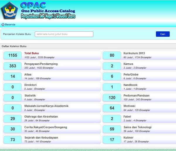 Minggu, 19 Juni 2022, SMP Negeri 2 Wawonii Utara luncurkan program Online Public Access Catalog (OPAC) untuk penelusuran koleksi buku perpustakaan sekolah di link http://smpn2wawoniiutara.sch.id/perpus/opac/ Online Public Access Catalog (OPAC) adalah sistem katalog terpasang yang dapat diakses secara umum dan dapat dipakai pengguna untuk menelusuri data katalog untuk memastikan apakah perpustakaan menyimpan karya tertentu untuk mendapatkan informasi tentang lokasinya dan jika sistem katalog dihubungkan dengan sistem sirkulasi, maka pengguna dapat mengetahui apakah bahan pustaka yang sedang dicari tersedia di perpustakaan atau sedang dipinjam. OPAC merupakan perkembangan teknologi di dalam ilmu perpustakaan, selain memberikan kemudahan bagi pengguna juga kemudahan bagi petugas perpustakaan dalam melakukan kegiatan pengatalogan. "Saat ini, SMP Negeri 2 Wawonii Utara tengah mempersiapkan diri untuk akreditasi perpustakaan. Salah satu item yang ada dalam instrumen Akreditasi adalah Online Public Access Catalog (OPAC) untuk penelusuran koleksi buku perpustakaan oleh publik. Dengan kerjasama yang baik, guru-guru kami telah berhasil mengembangkan OPAC, setelah sebelumnya telah merampungkan penginputan data buku di Aplikasi Sistem Database Digital (SDD) Perpustakaan SMP Negeri 2 Wawonii Utara. Dengan Aplikasi ini, koleksi buku perpustakaan dapat dengan mudah diakses dan ditelusuri oleh peserta didik, guru, masyarakat umum maupun pihak-pihak yang berkepentingan" ujar Asriadi Hambali, S.Pd selaku Kepala Sekolah. Saat ini OPAC SMP Negeri 2 Wawonii Utara telah dapat diakses melalui situs website sekolah http://www.smpn2wawoniiutara.sch.id/perpus/opac/ dan masih akan terus dikembangkan sesuai kebutuhan sekolah. Semoga Aplikasi ini dapat bermanfaat baik bagi SMP Negeri 2 Wawonii Utara khususnya, masyarakat umum maupun pihak-pihak yang berkepentingan. (atm)
