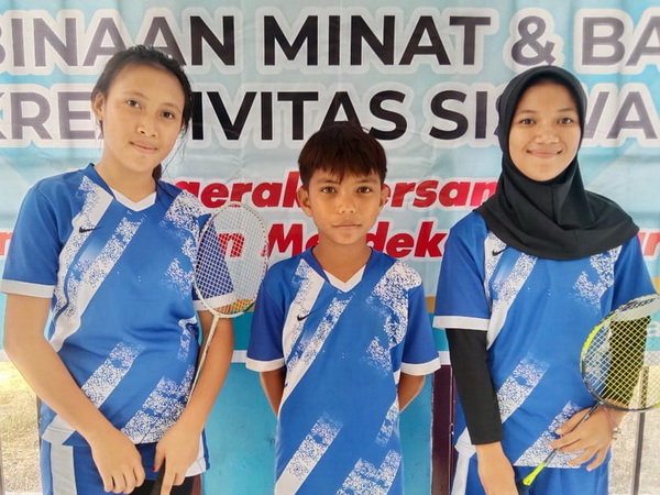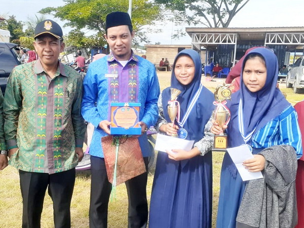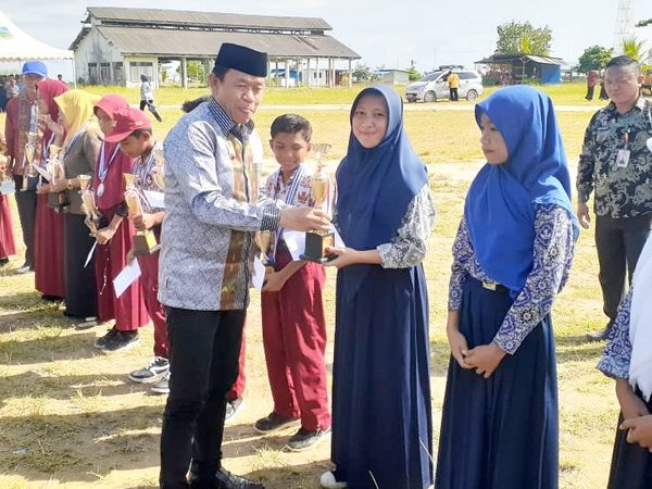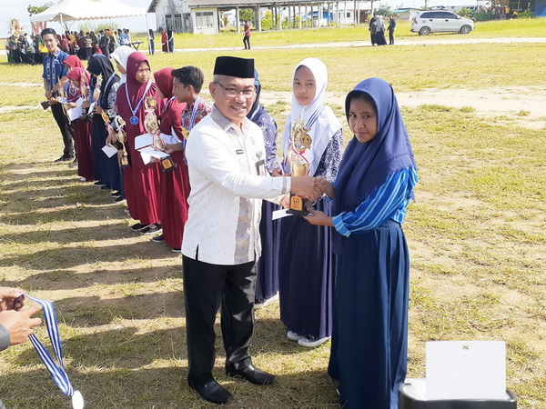 (Wakil Bupati Konawe Kepulauan) Kepada Anjung atas prestasinya sebagai Juara 1 Bulu Tangkis Putri Tingkat SMP