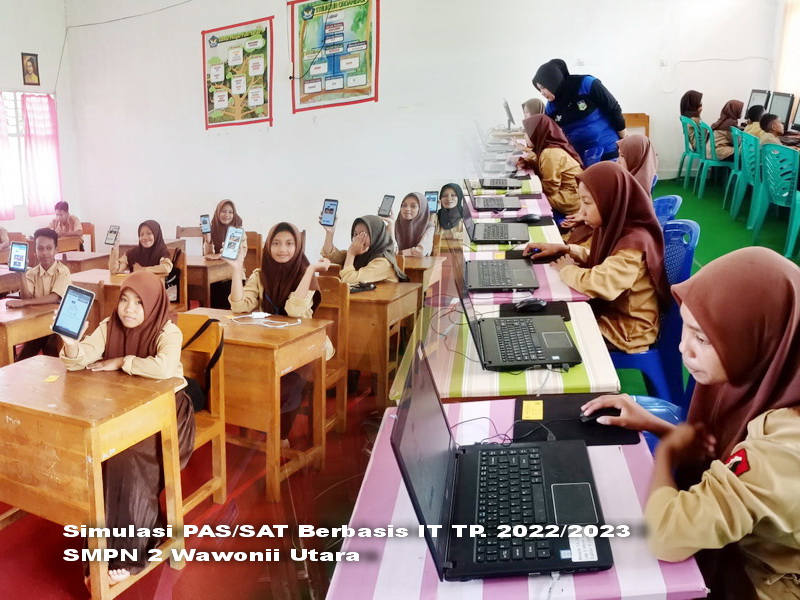 Sabtu, 3 Juni 2023, SMPN 2 Wawonii Utara menggelar simulasi pelaksanaan Penilaian Akhir Tahun (PAT) untuk kelas VIII, dan Sumatif Akhir Tahun (SAT) untuk kelas VII sebagai kelas pelaksana Kurikulum Merdeka taahun pelajaran 2022/2023. Kegiatan ini dilakukan sebagai bentuk persiapan pelaksanaan PAT/SAT yang akan dilaksanakan tanggal 5 s.d. 10 Juni 2023 mendatang. Seperti ujian-ujian sebelumnya, SMPN 2 Wawonii Utara tetap konsisten melaksanakan ujian berbasis IT dengan memanfaatkan komputer dan android. “Berdasarkan pengalaman, memang pelaksanaan ujian berbasis IT tidaklah mudah. Banyak kendala yang ditemukan baik pada saat penginputan soal, maupun pada tahap pelaksanaan seperti keterbatasan jumlah komputer PC/Laptop dan HP Android, kendala koneksi jaringan dan yang paling berat adalah jika terjadi pemadaman listrik. Dengan simulasi, segala kendala yang akan timbul dapat diantisipasi dan dipersiapkan solusinya.” Ujar Asriadi Hambali, S.Pd selaku kepala sekolah. Penginputan soal ke aplikasi ujian oleh guru Peserta didik SMPN 2 Wawonii Utara yang akan melaksanakan PAT/SAT berbasis IT adalah sebanyak 3 rombel (kelas VII A, VII B dan VIII) dengan jumlah keseluruhan 52 peserta didik yang terdiri atas 27 laki-laki dan 25 perempuan. Untuk pelaksanaan PAT/SAT berbasis IT menggunakan 2 ruangan yaitu Laboratorium Komputer untuk kelas VII A dan VII B dengan fasilitas Komputer PC 17 buah dan Laptop 15 buah serta 1 Ruang kelas untuk kelas VIII dengan fasilitas HP Android 22 buah. (atm)