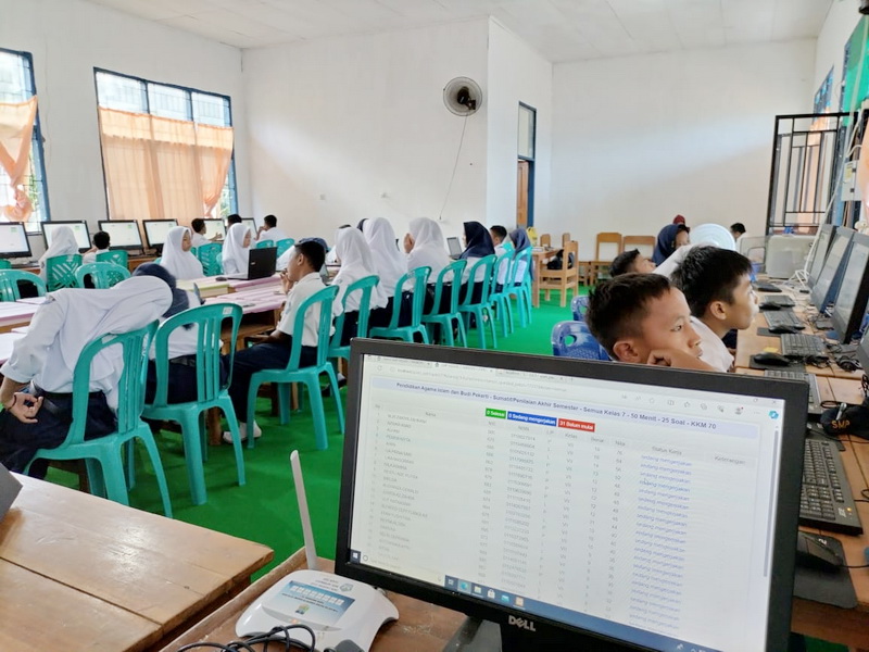 Senin, 4 Desember 2023, SMP Negeri 2 Wawonii Utara kembali menggelar Asesmen Sumatif Akhir Semester Ganjil tahun pelajaran 2023/2024 berbasis TIK menggunakan aplikasi CBT Offline hasil pengembangan mandiri SMPN 2 Wawonii Utara. Asesmen ini dilaksanakan mulai tanggal 4 - 8 Desember 2023. Kegiatan ini diikuti oleh 81 peserta didik yang terdiri atas : - Kelas 7 : 13 Laki-laki, 18 Perempuan - Kelas 8 : 12 Laki-laki, 16 Perempuan - Kelas 7 : 10 Laki-laki, 12 Perempuan Sejak tahun 2019 hingga sekarang SMP Negeri 2 Wawonii Utara telah komitmen melaksanakan asesmen akhir semester maupun akhir tahun dengan menggunakan peralatan IT. Selain meningkatkan literasi digital dalam hal kompetensi pemanfaatan IT, kegiatan ini juga sangat relevan dengan pesatnya perkembangan teknologi dan komunikasi saat ini. Pelaksanaan asesmen memanfaatkan fasilitas sekolah sebanyak 22 HP Android, 17 PC Desktop, 12 Laptop dan 2 buah komputer server dan 2 buah wireless router. Peserta dibagi menjadi 2 ruang dan 2 sesi. Sesi pertama dilaksanakan pukul 07.30 - 09.30 dan sesi 2 dilaksanakan pukul 10.00 - 12.00 WITA. (atm)